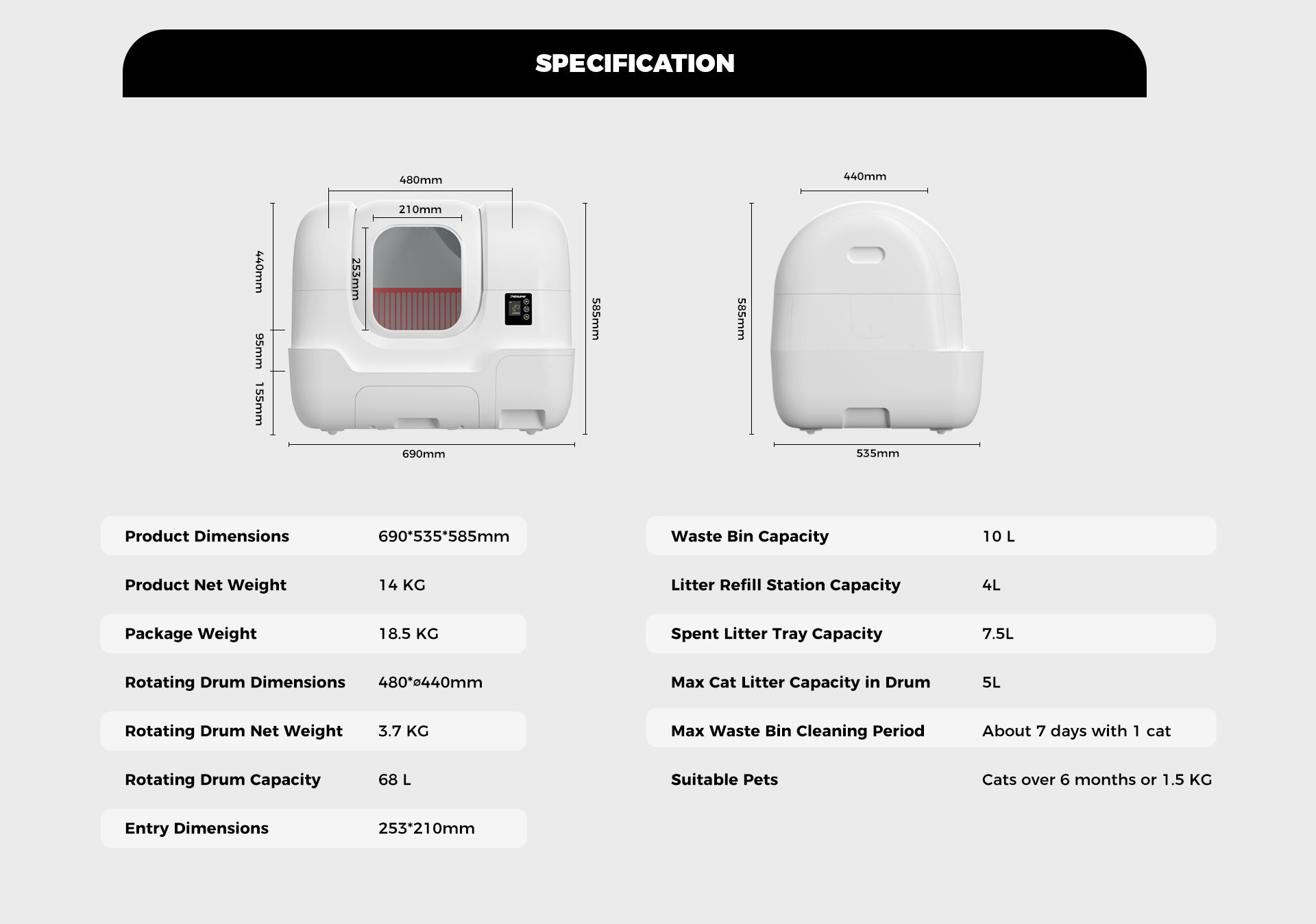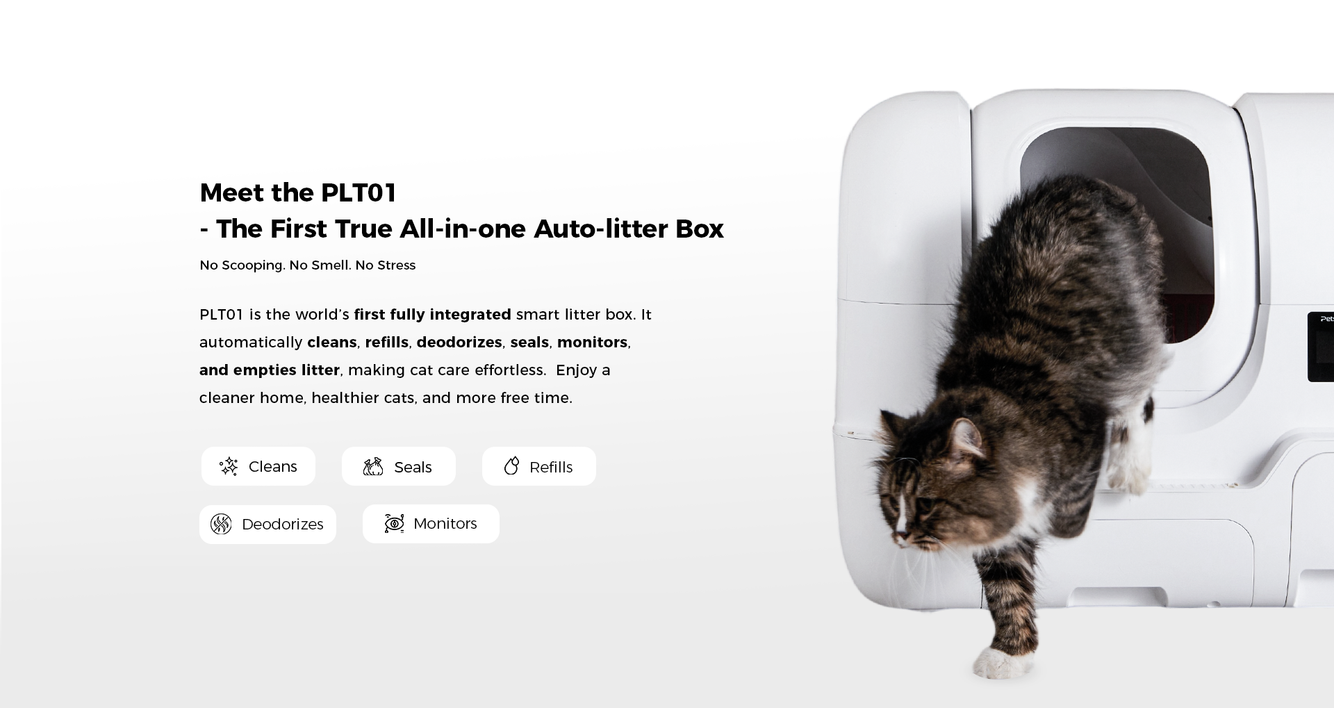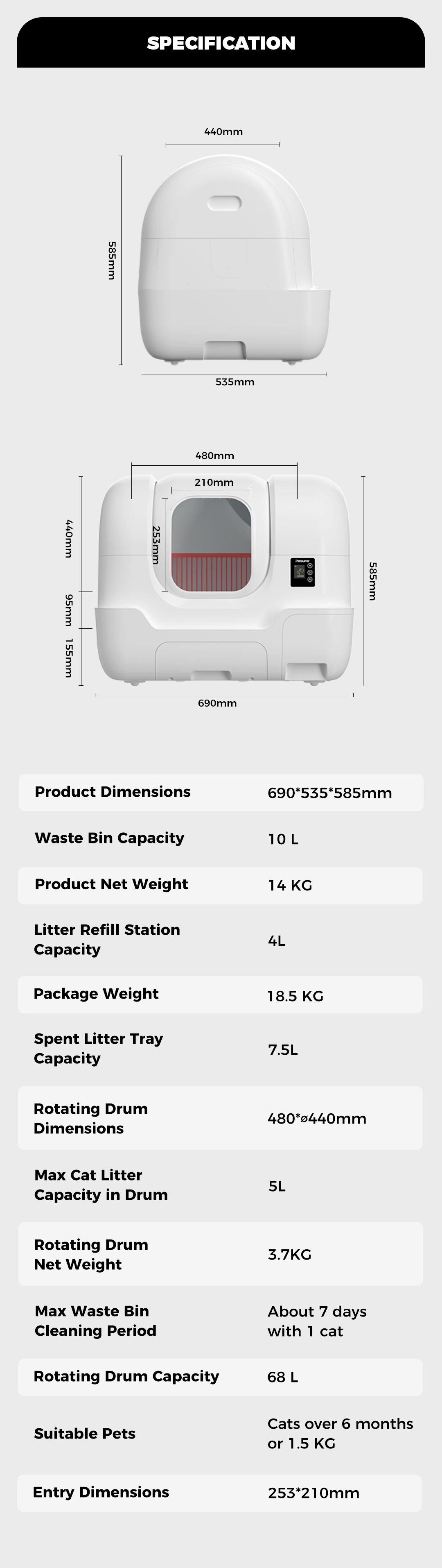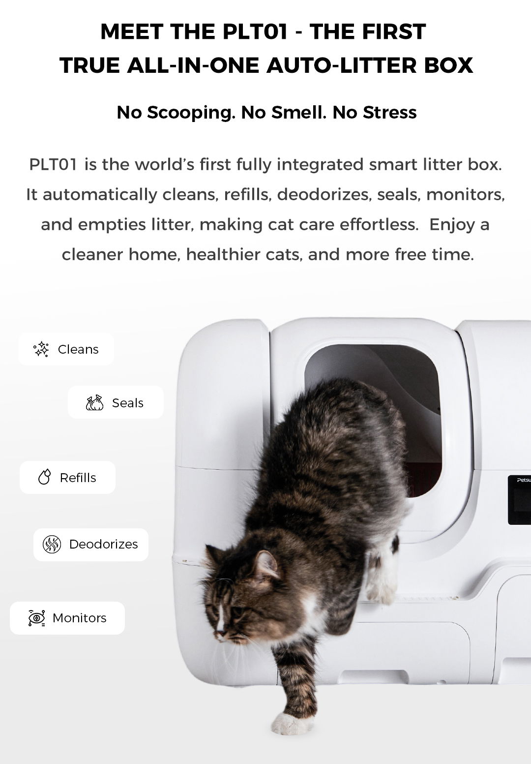 Smarter design, less heavy lifting, and no more bending over with a full bin of clumping litter. Release all litter with a single press. No scooping, tipping, or mess. Ideal for litter type changes or deep cleaning, saving time and effort, especially for multi-cat homes.